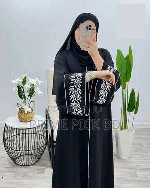 Gown Borka Fabrice : premium Dubai cherri বোরকা + হিজাব অরিজিনাল এম্বটারী কাজ করা লং সাইজ/ ৫০-৫২-৫৪-৫৬ - ৫৮ বডি সাইজ ৩৬-৪৮